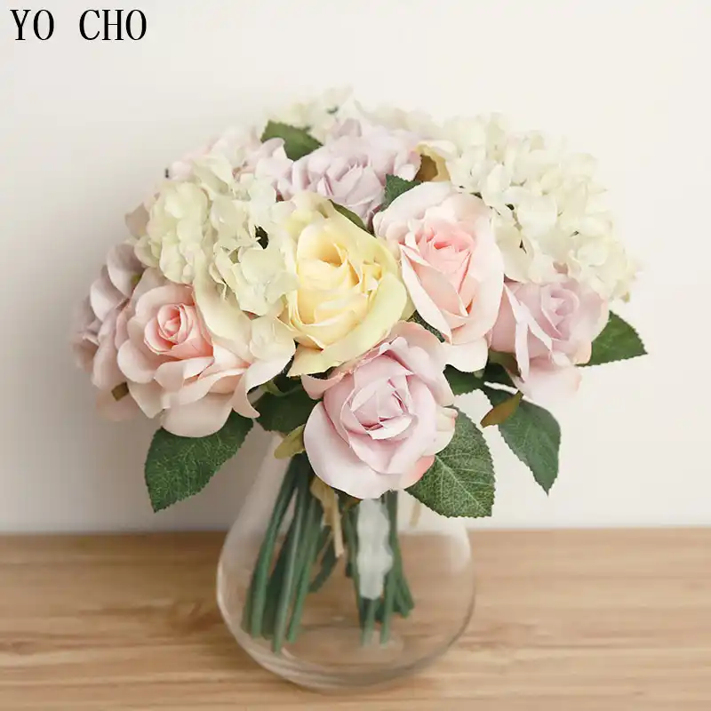 Amazon com hydrangea rose purple lavender hand tie large silk. Stem wrapped and tied with ribbon. Bridal bouquet with white and pink and. Because of his origin, in russia it became known as the japanese rose. Hydrangea is a spherical inflorescence growing on the bush.